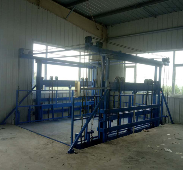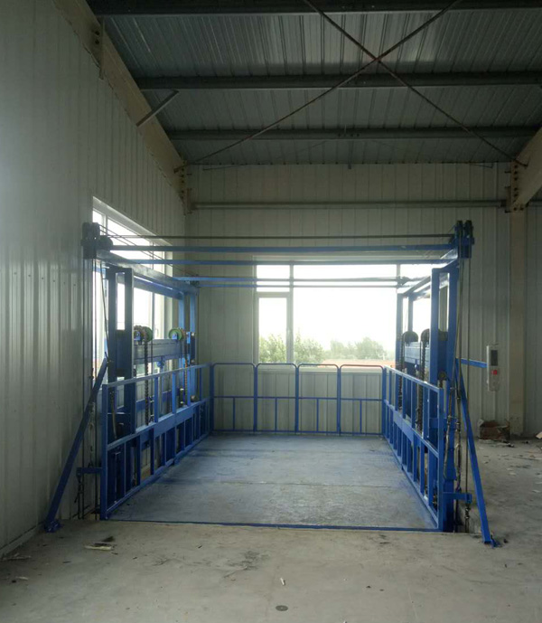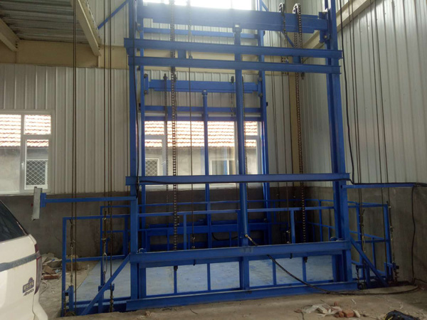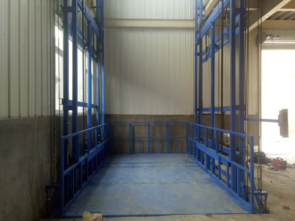 液壓升降平臺制造廠家-濟(jì)南金創(chuàng)升降機(jī)械,生產(chǎn)的雙體導(dǎo)軌鏈條式液壓升降平臺在河北保定安裝完成,日前已經(jīng)投入使用中。